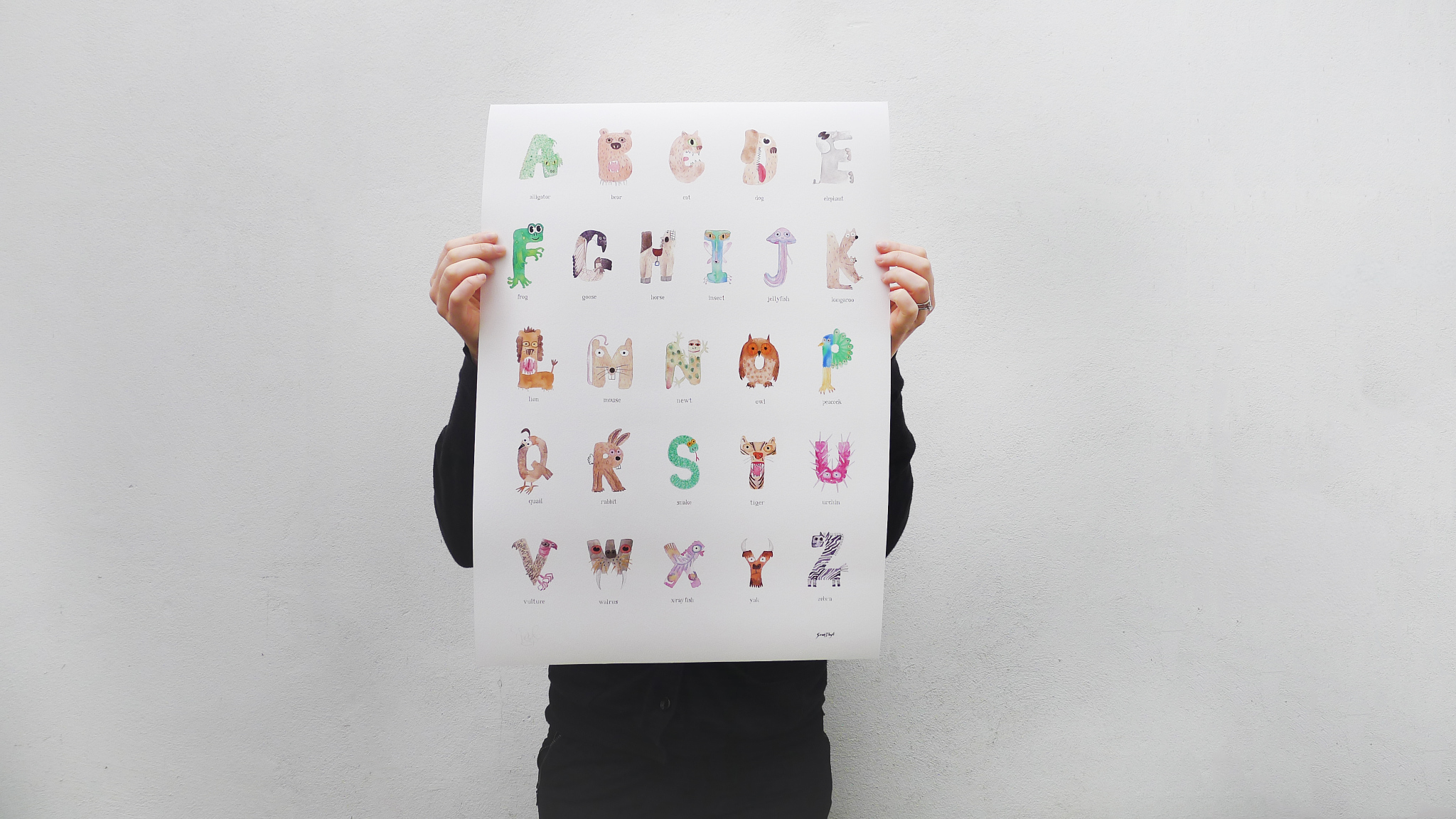 We have also created The Alphabet of Mythical Animals displaying creatures from traditional folktales and legend. The illustrations and typography are hand painted using watercolours, and are now available as A2 posters in my Shop.